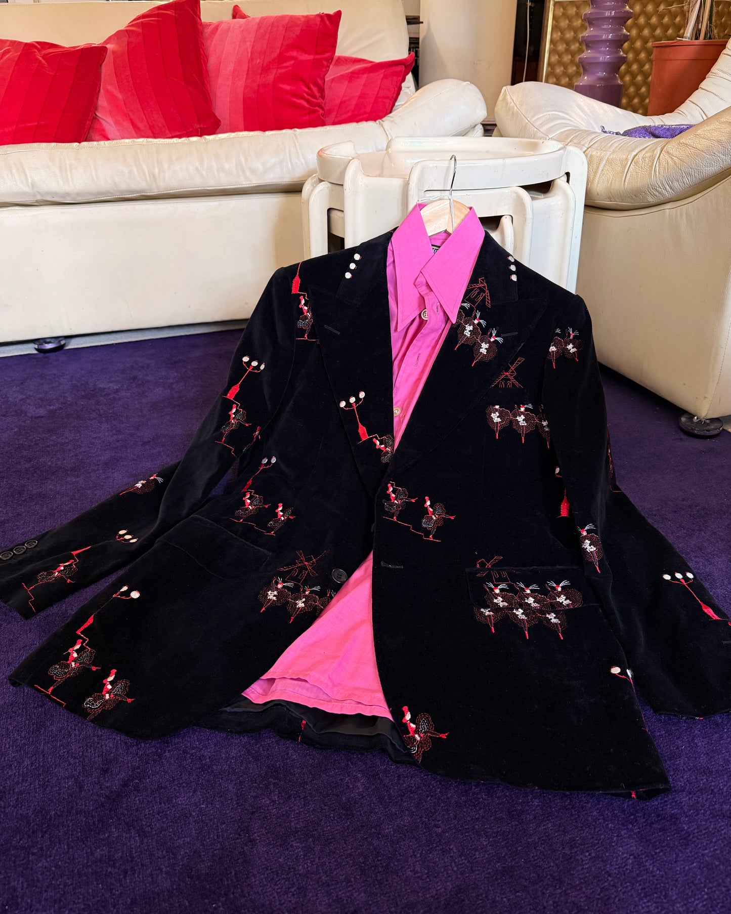 RARE Vintage 1970s Moulin Rouge Cabaret Embroidered Velvet Blazer
