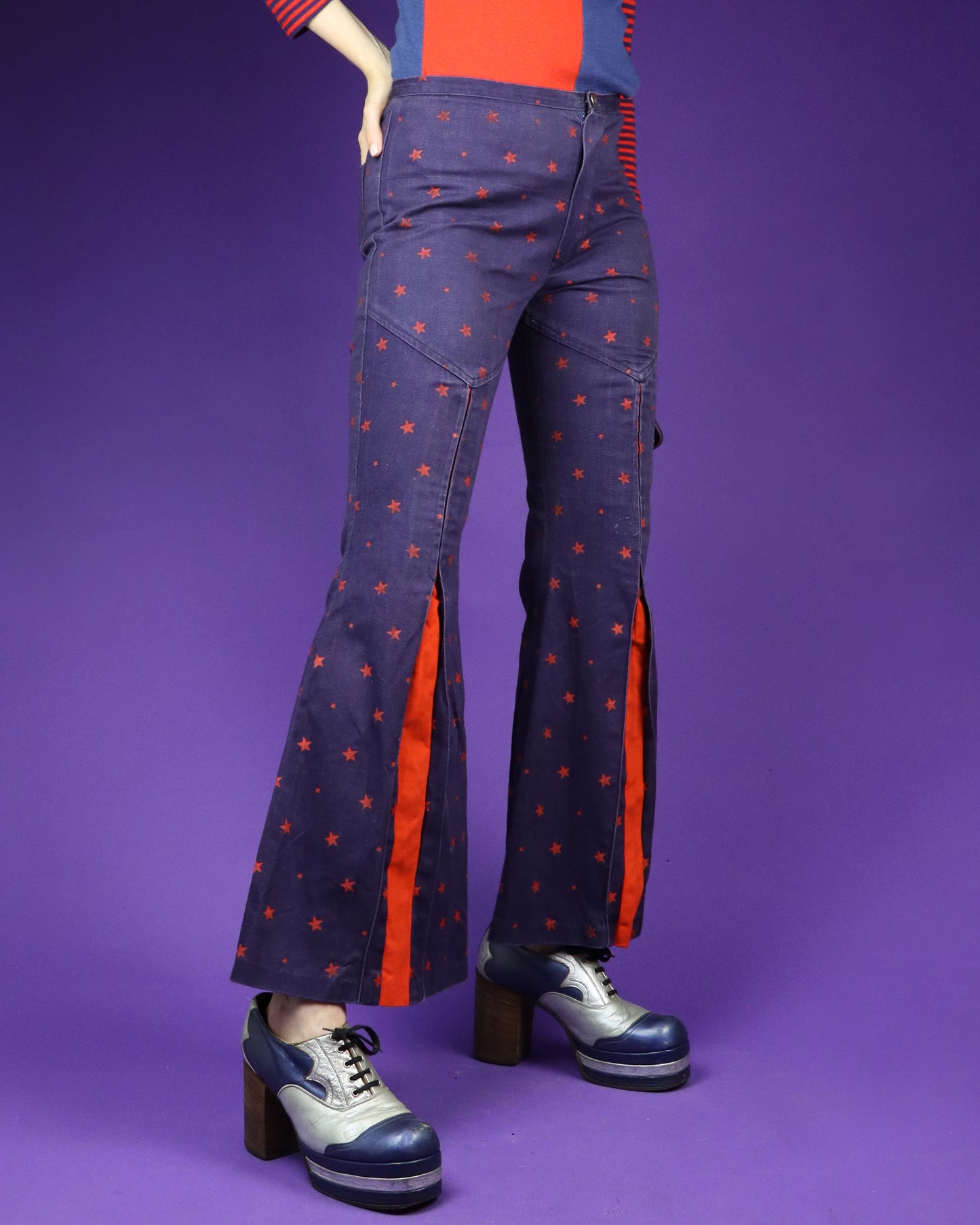 Vintage 1970s Star Print Glam Rock Circus Flares
