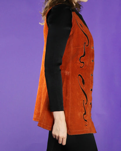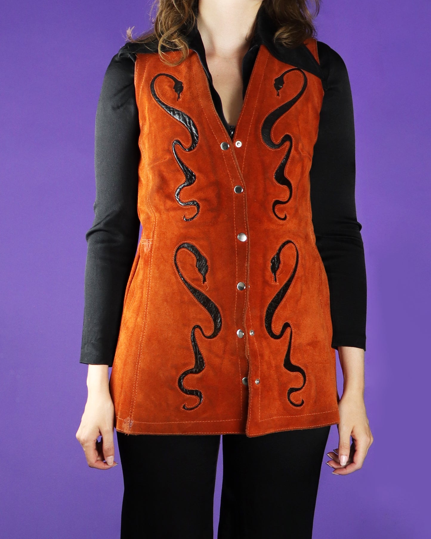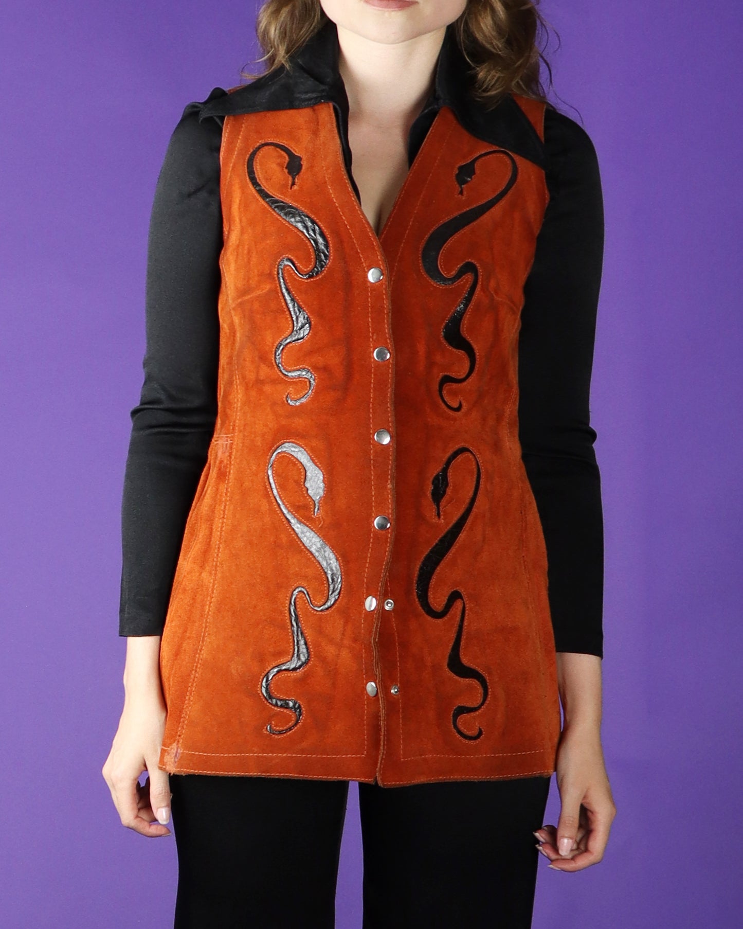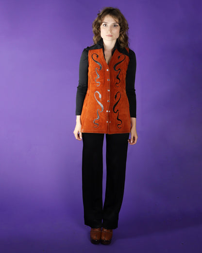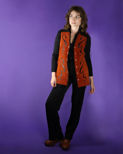 Vintage 1970s Serpent Snake Burnt Orange Suede Vest