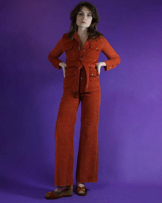 Vintage 1970s Rust Corduroy Safari Suit