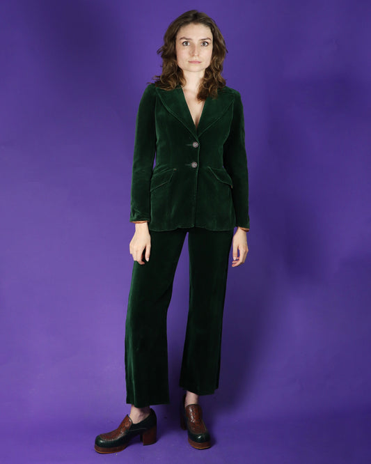 Vintage 1970s Green Velvet Two Piece Suit