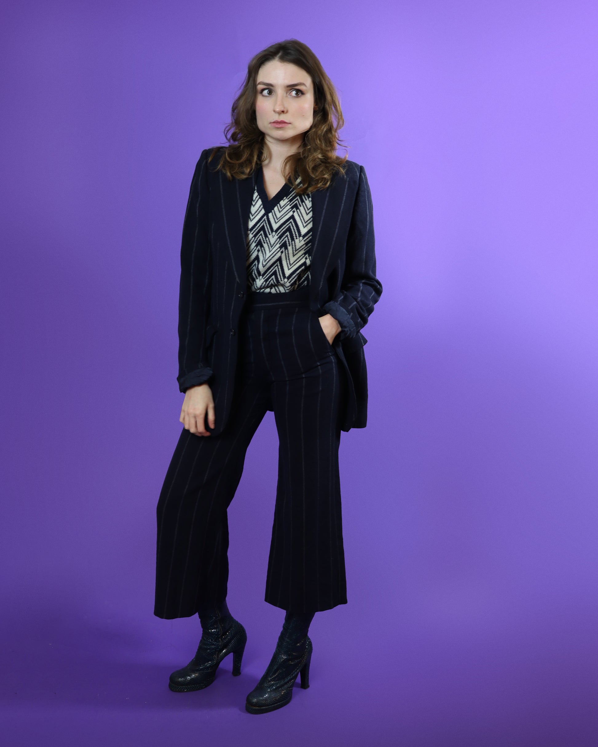 This suit would have originally been menswear, but looks great on anyone!