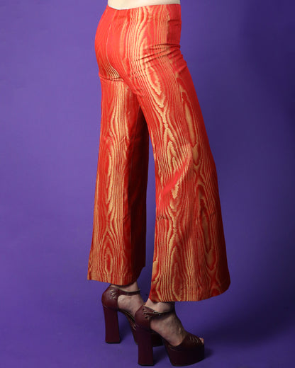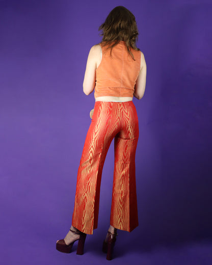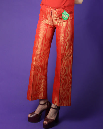 Vintage 1970s DEADSTOCK Shimmery Wood Effect Trousers Red & Gold