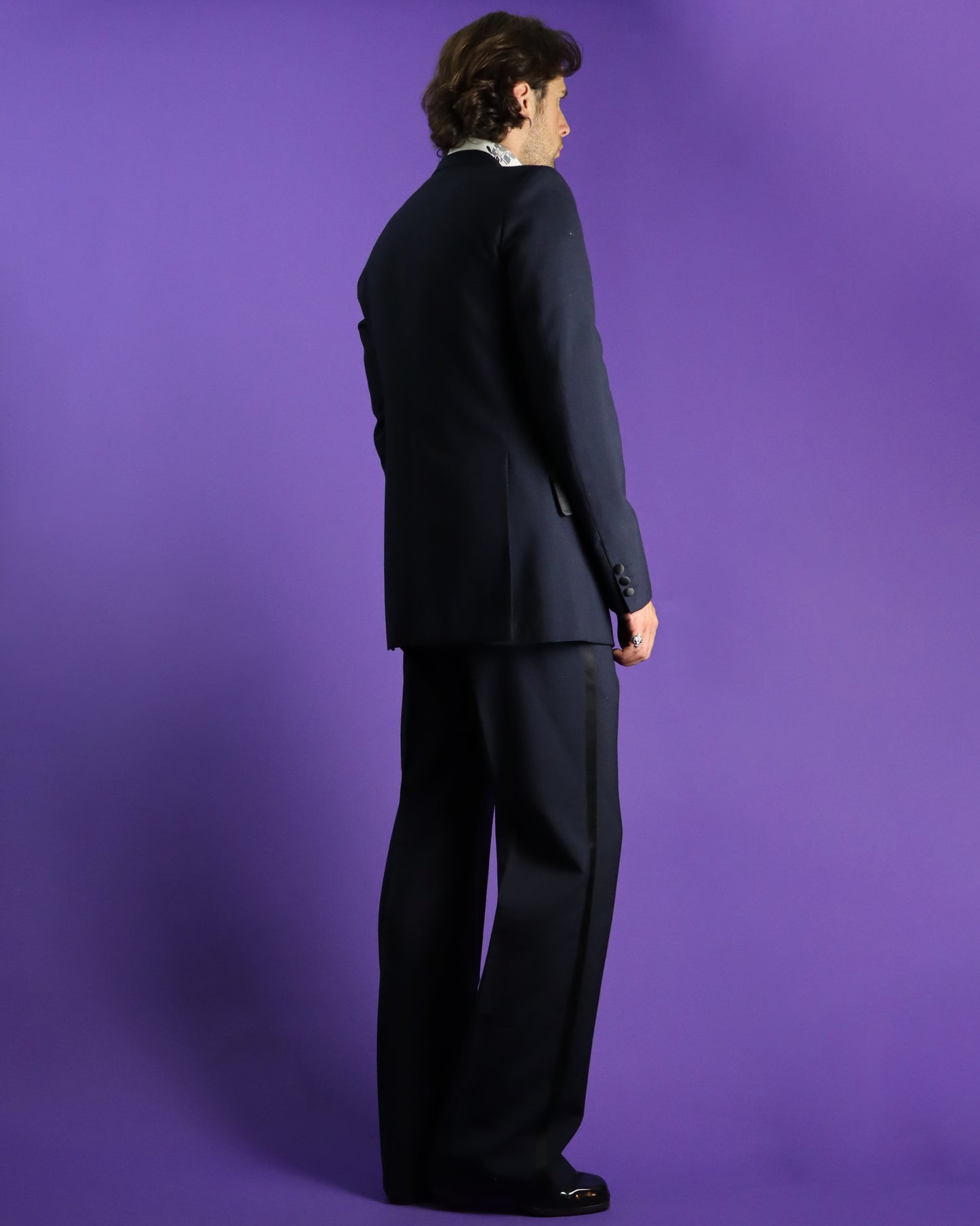 Vintage 1970s Navy Blue Dinner Suit with Satin Trim