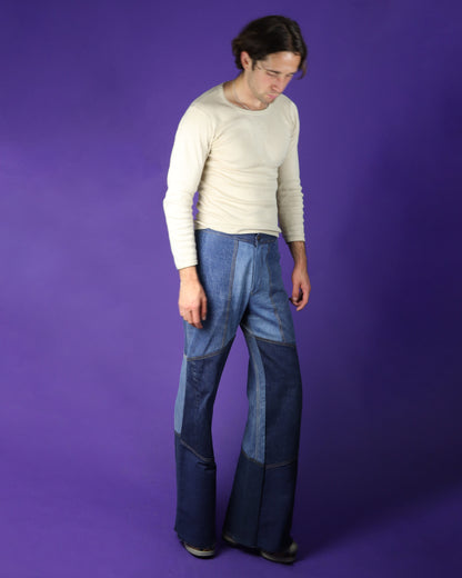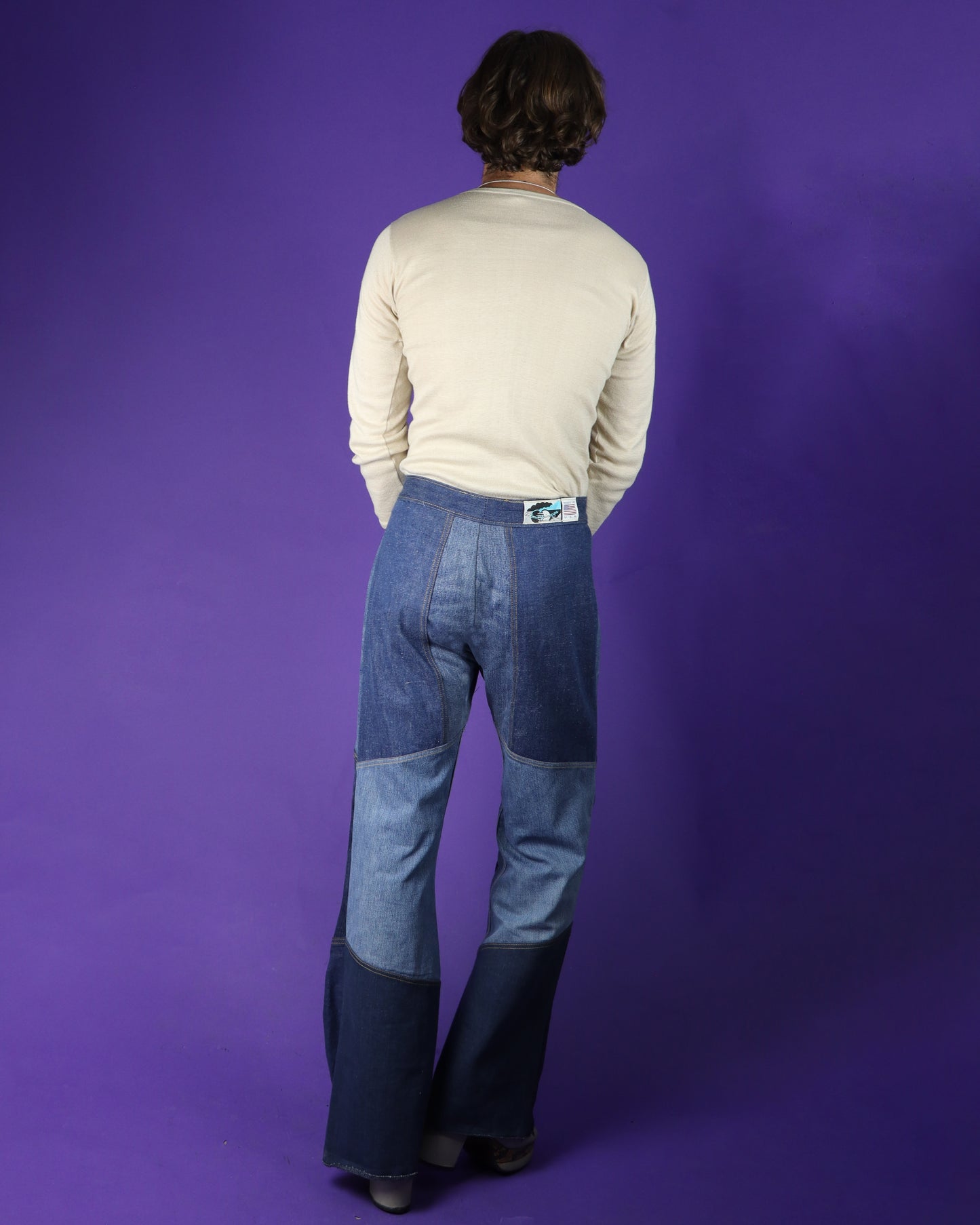 Vintage 1970s Recycled Denim Patchwork Flares by Antonio Guiseppe