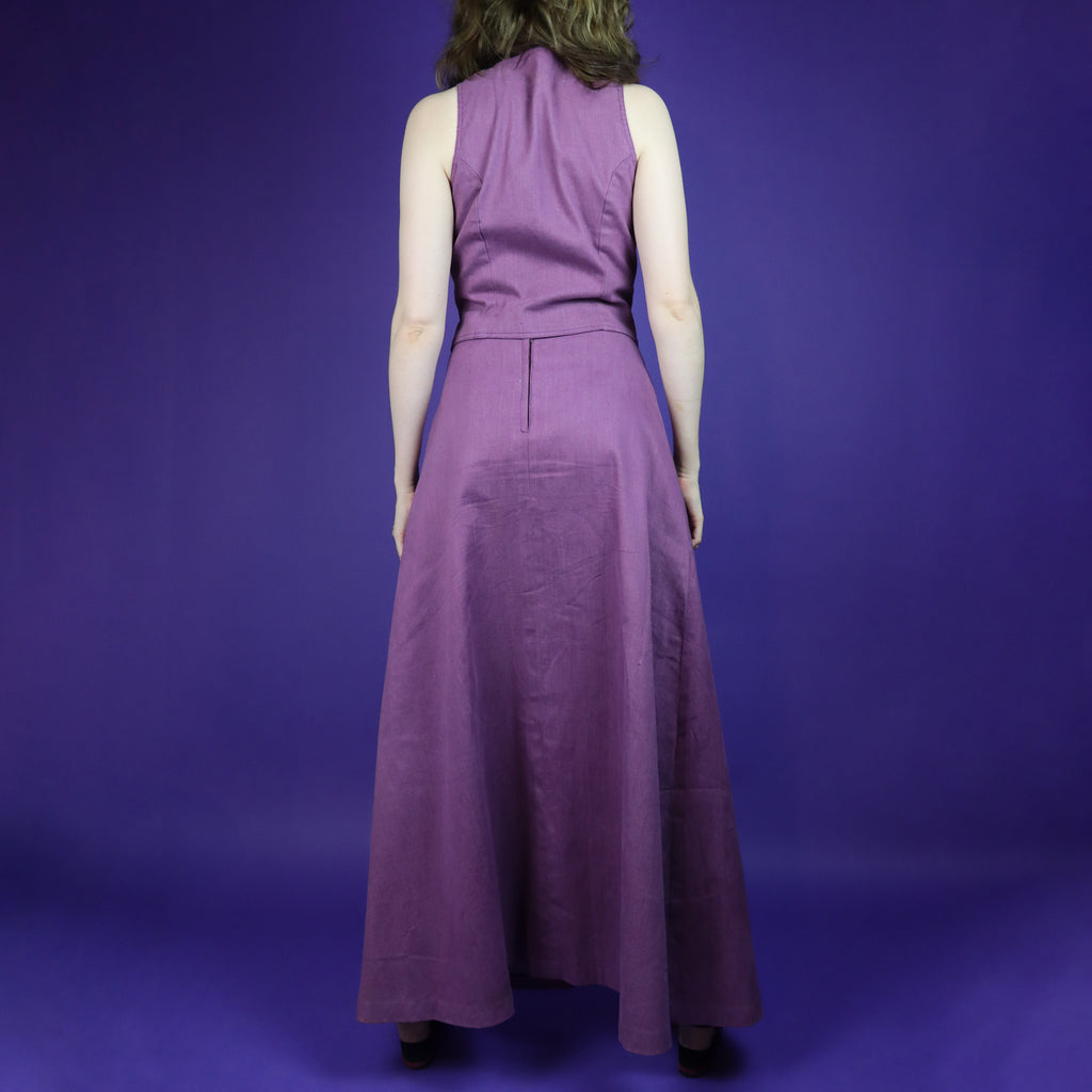 Vintage 1970s Purple Denim Two Piece Set Waistcoat & Skirt Suit