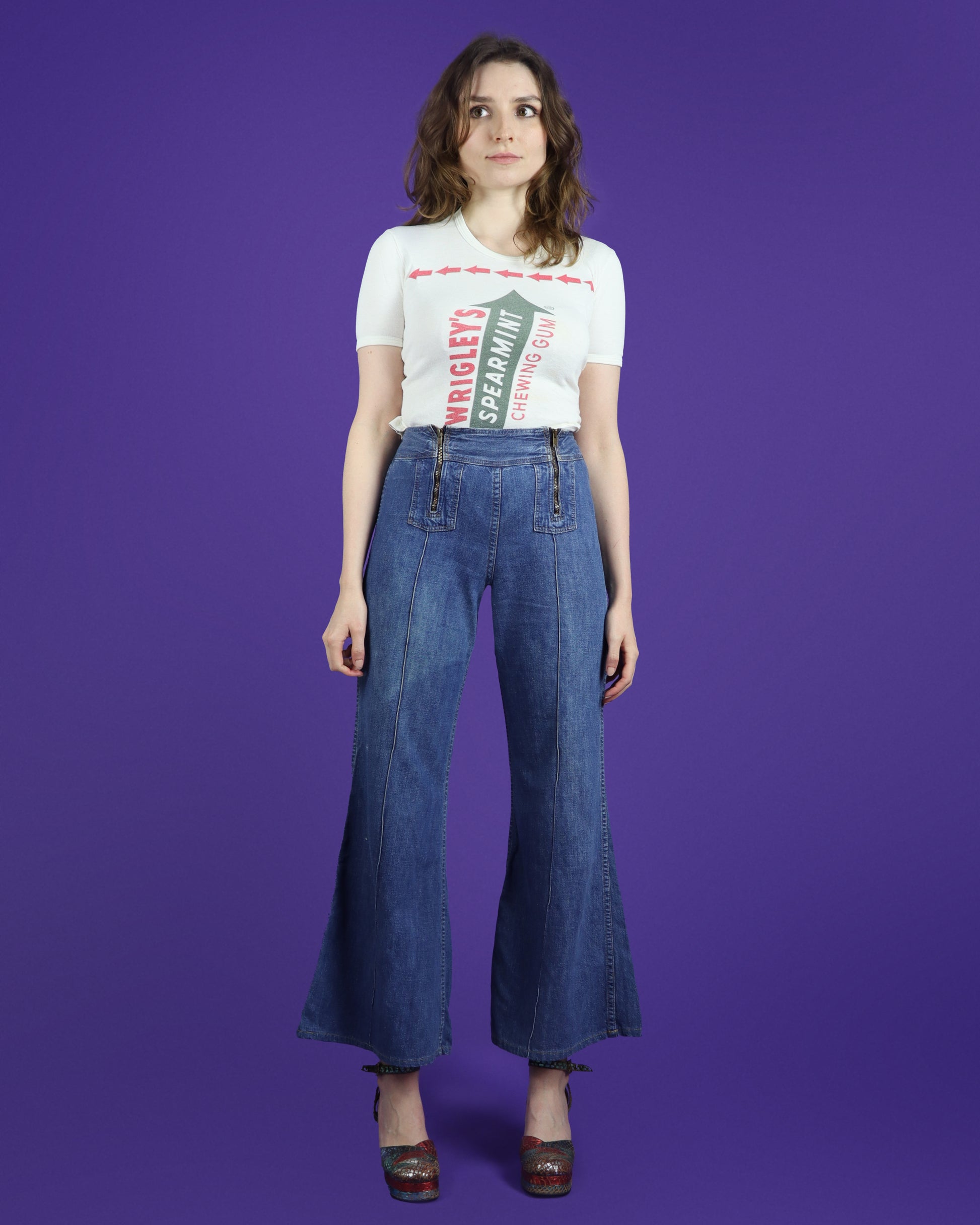 Vintage 1970s Maverick Double Zipper Denim Flares