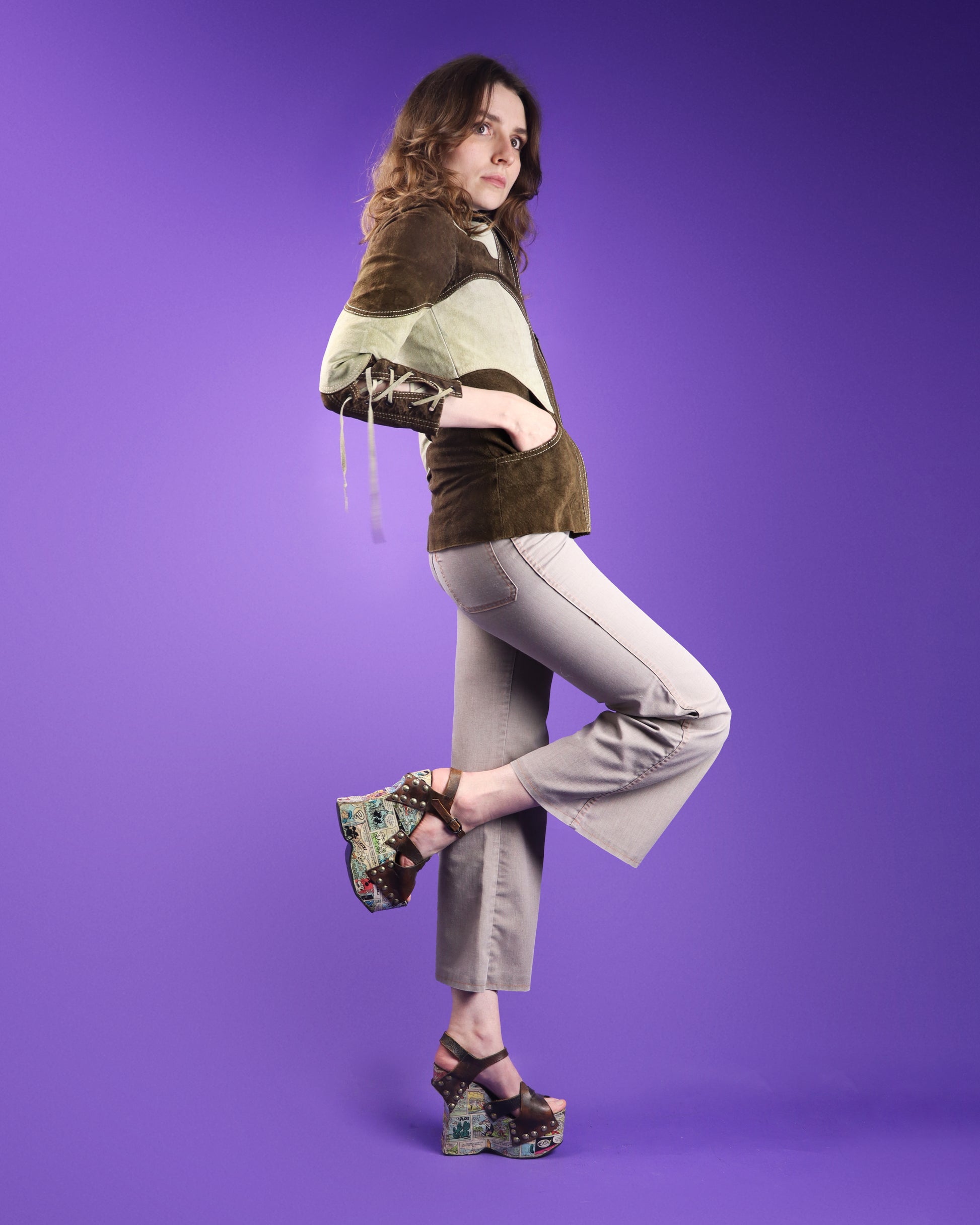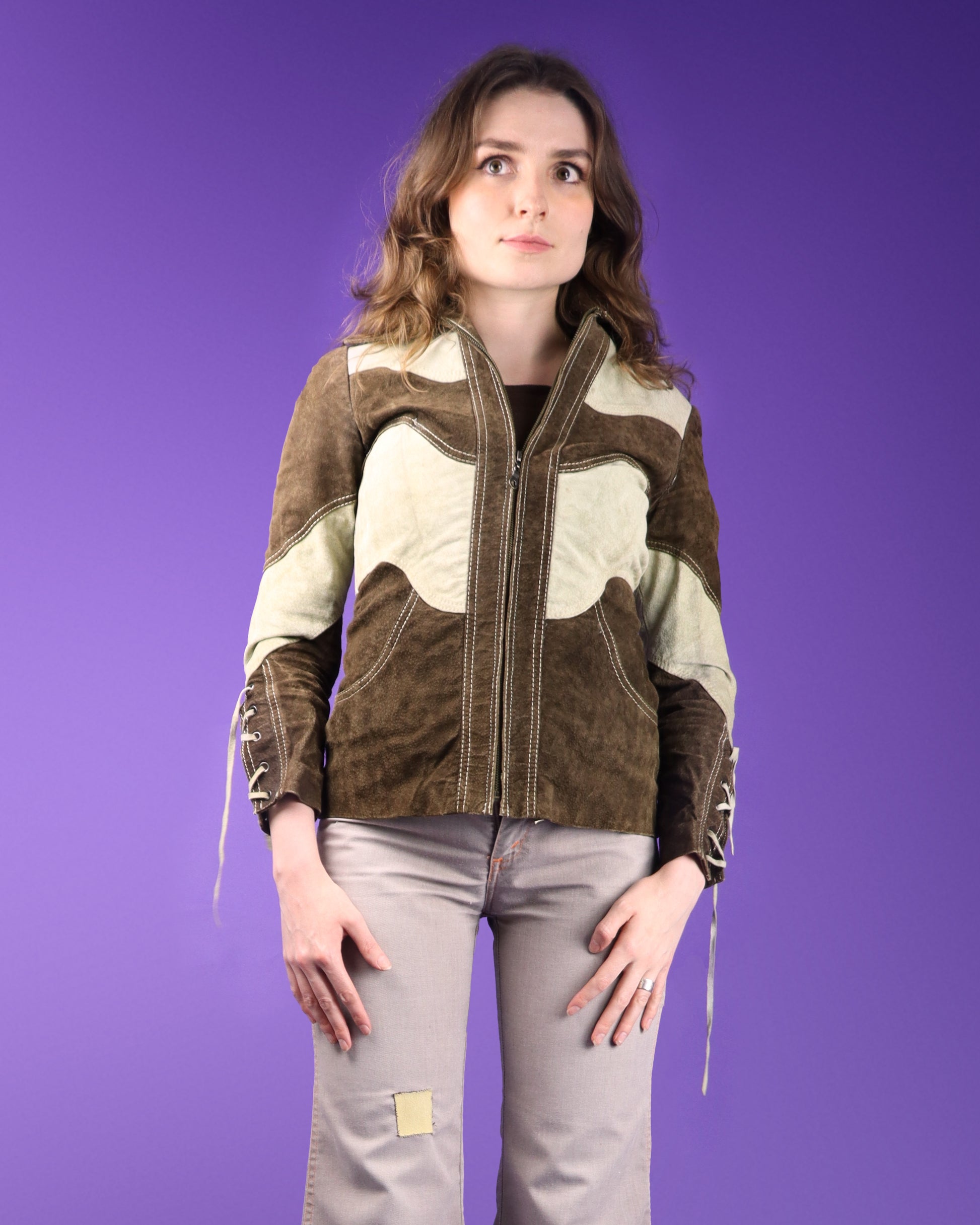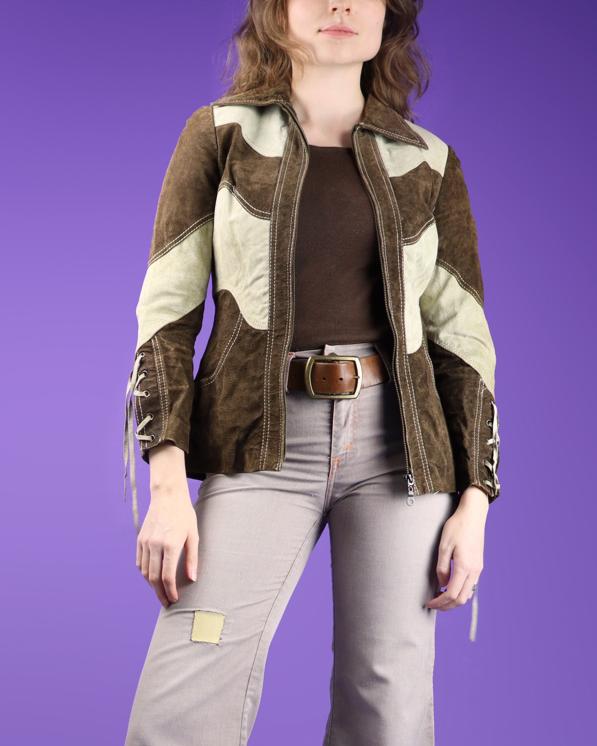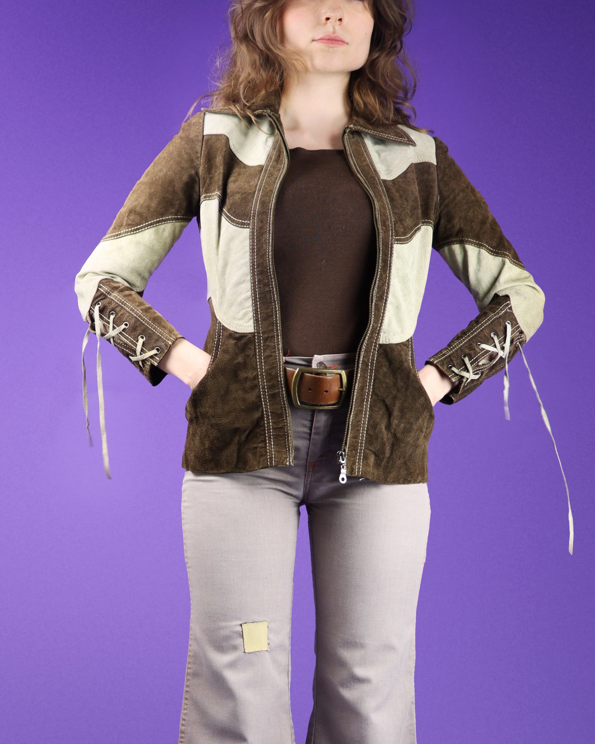 Vintage 1970s Roncelli Two Tone Suede Lace Up Sleeve Jacket