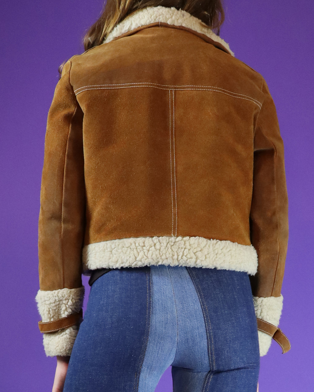 Vintage 1970s Fleece Lined Cropped Suede Aviator Jacket