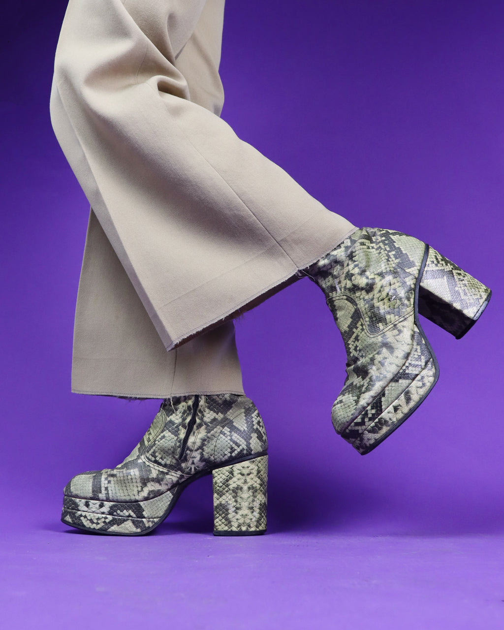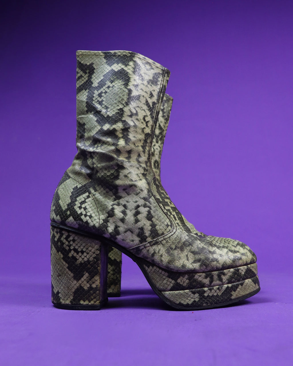 Vintage 1970s Faux Snakeskin Platform Boots