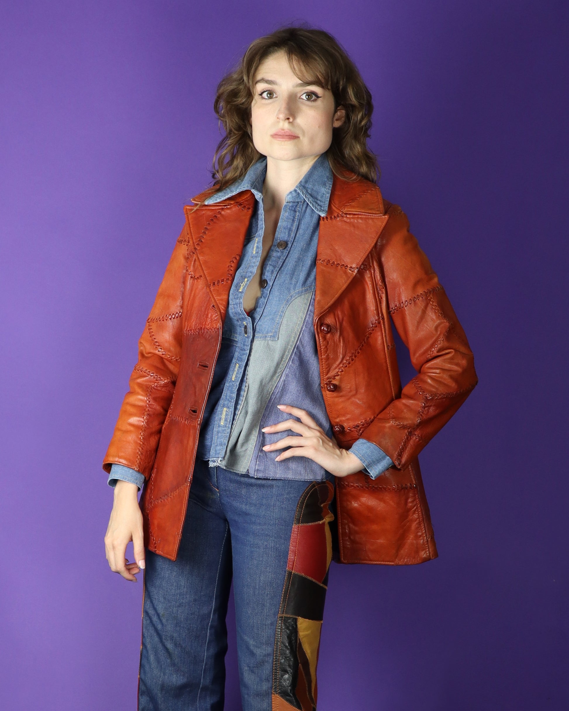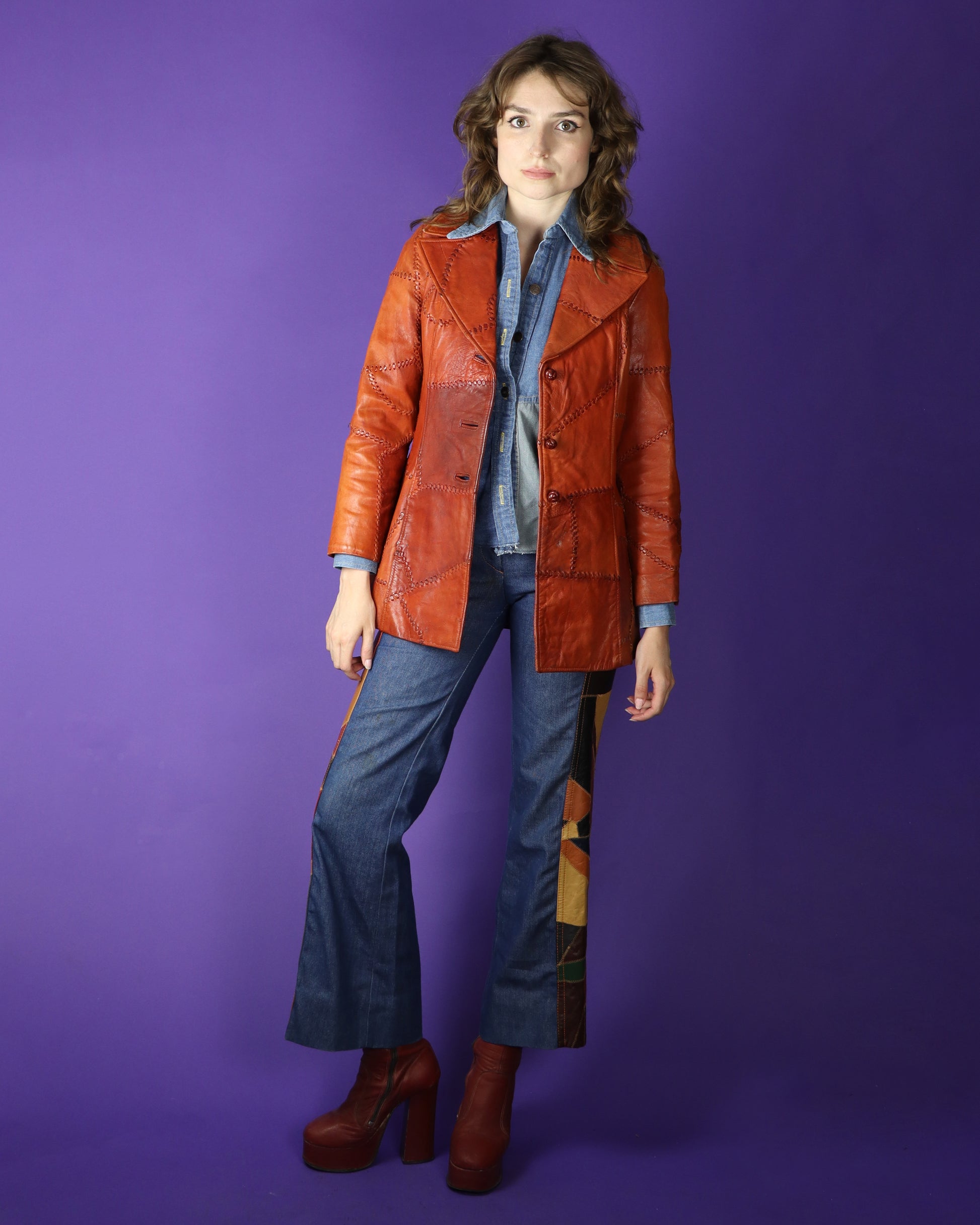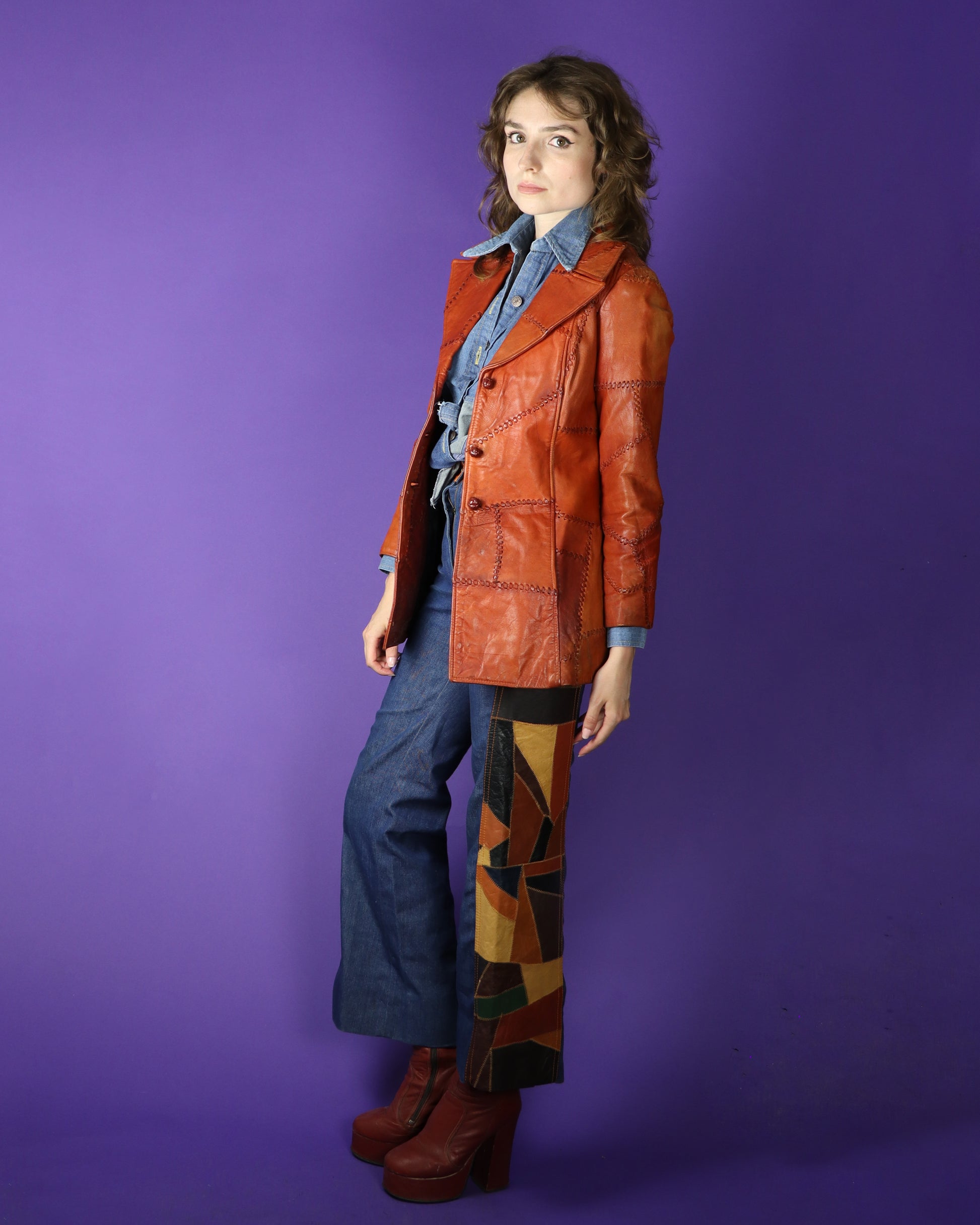 Vintage 1970s Antonio Guiseppe Haute Chocolate Leather Patchwork Denim Flares
