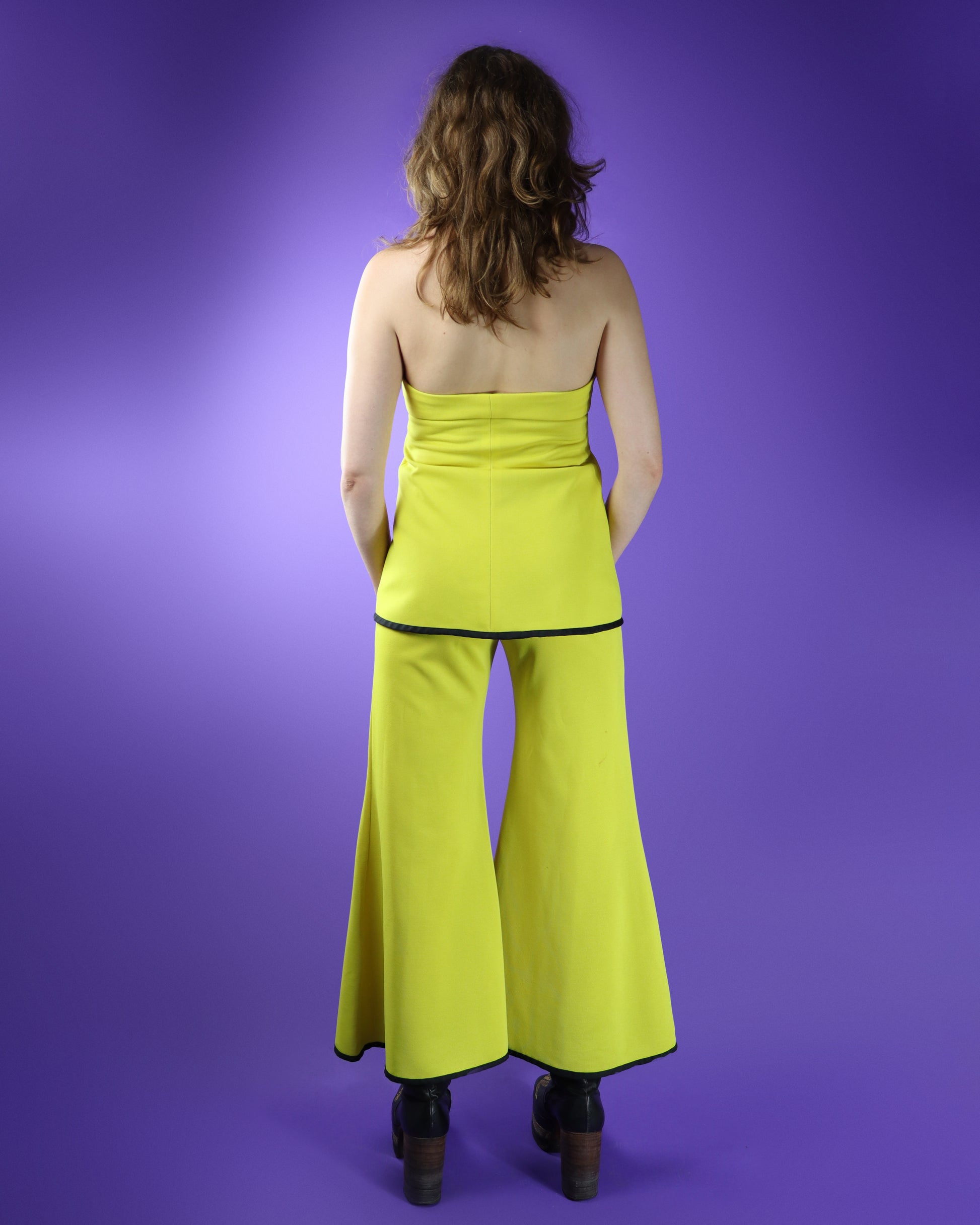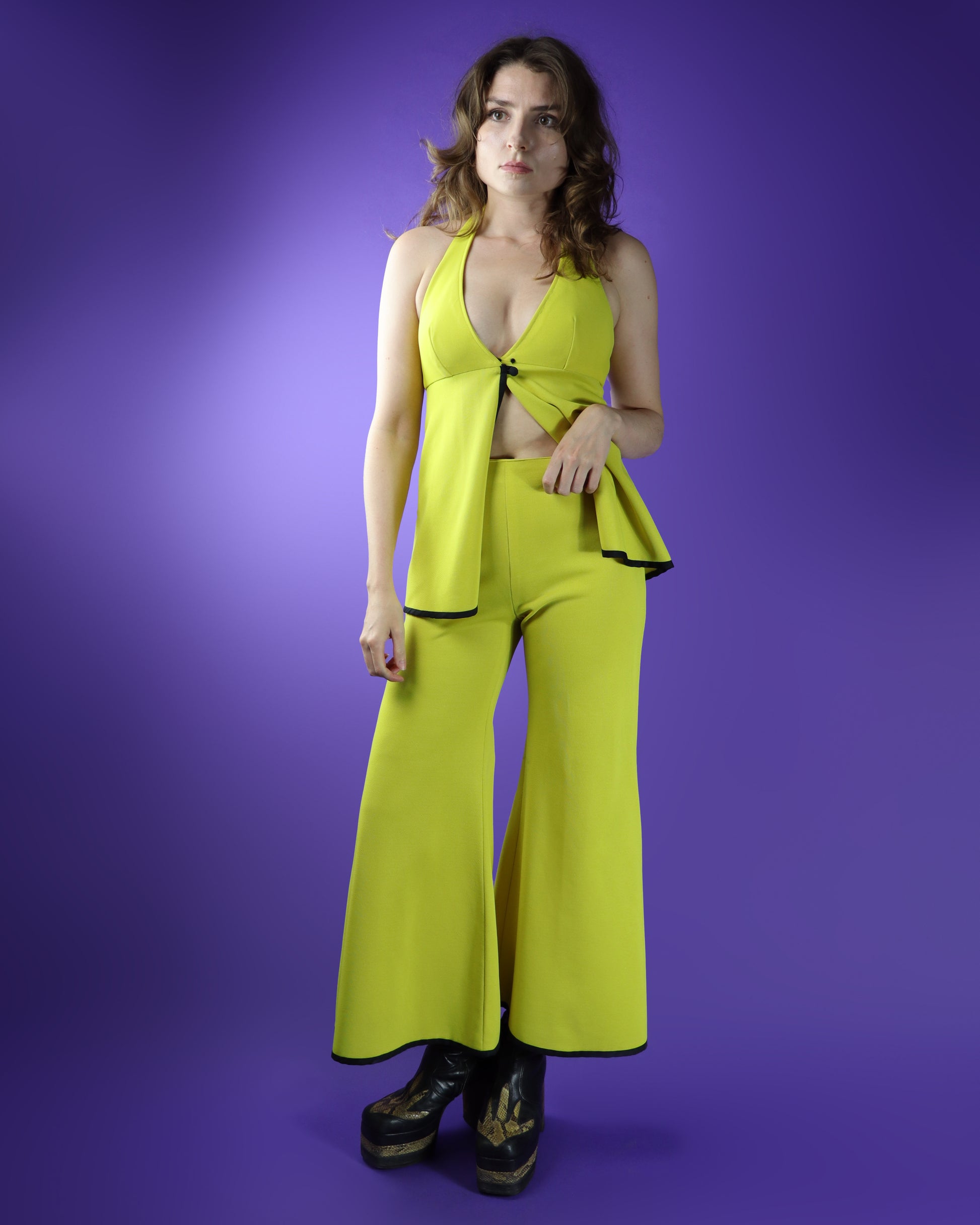 Vintage 1970s Yellow Trouser Suit With Palazzo Flares and Halterneck Top
